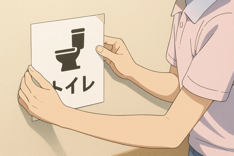 - こんな時に: とにかく明確に、迷わせることなくトイレの場所を伝えたい場合に最適です。ドアの真上などに貼って使います。