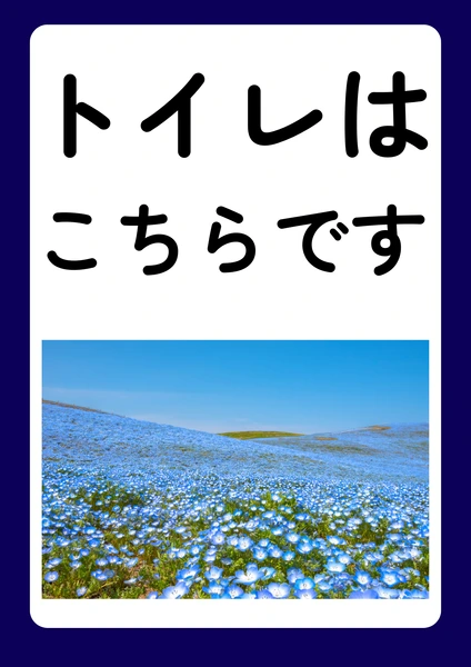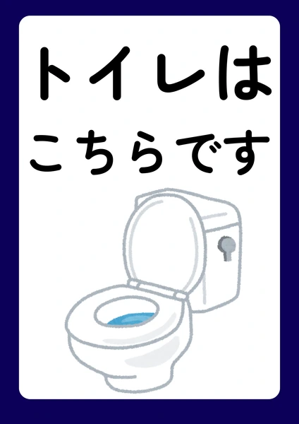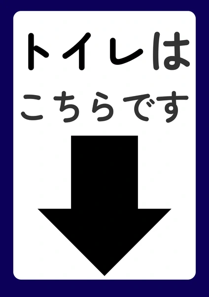 - 特徴: 「トイレはこちらです」という大きな文字と、真下を指す大きな矢印「⇩」だけで構成されています。