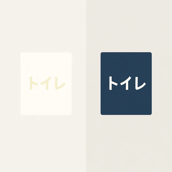 だからこそ、白地に黒、濃紺地に白といった、誰の目にも明らかな「色のコントラスト(対比)」が重要になるんですよね。