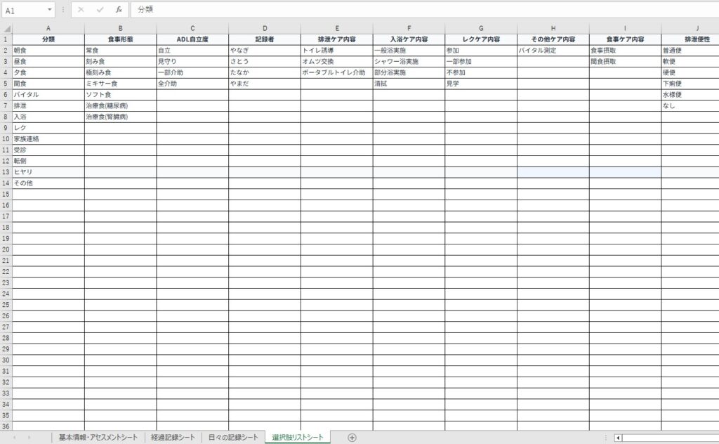 - 最初に「選択肢リスト」だけ、自施設用に軽く整える